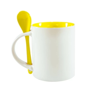 Caneca Interno Colorida Amarela com Colher